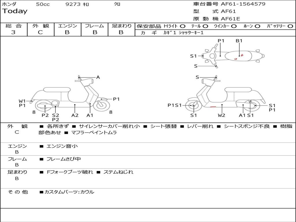 | Номер рамы / VIN | AF61-1564579 |