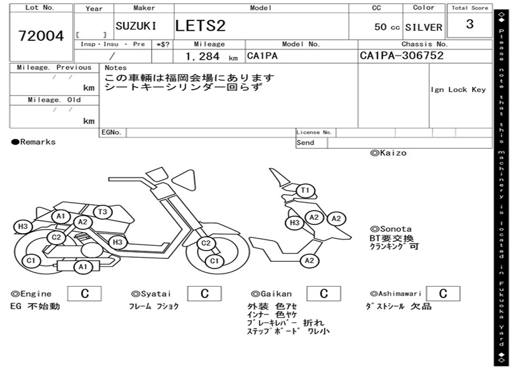 | Номер рамы / VIN | CA1PA-306752 |