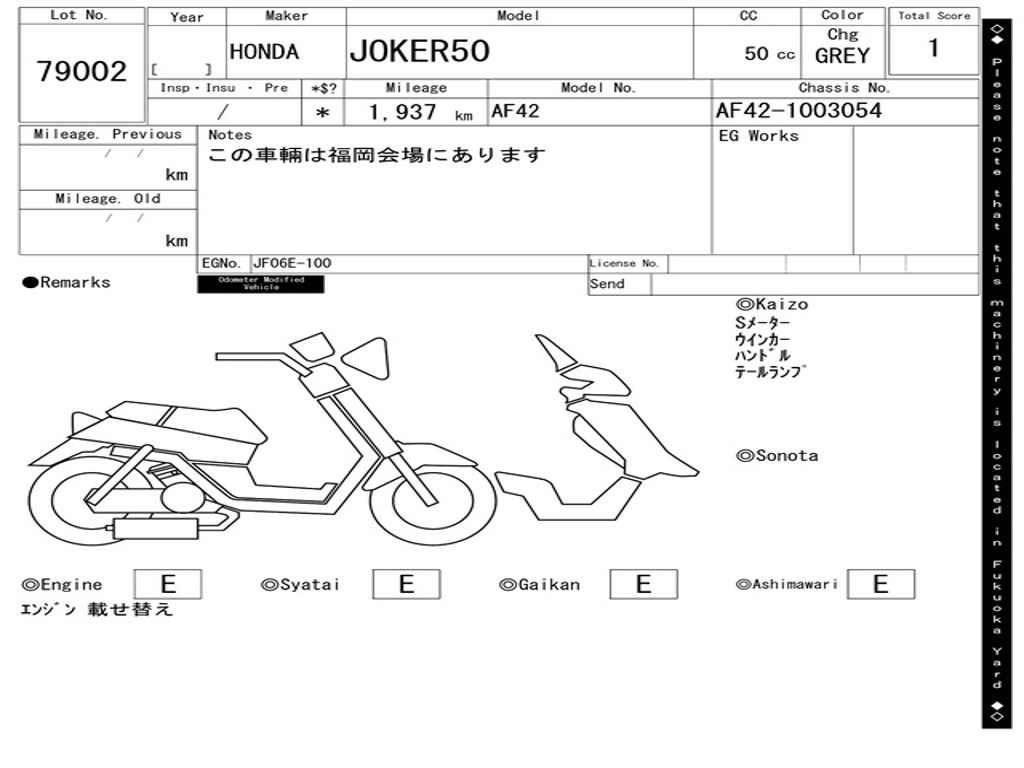 | Номер рамы / VIN | AF42-1003054 |
