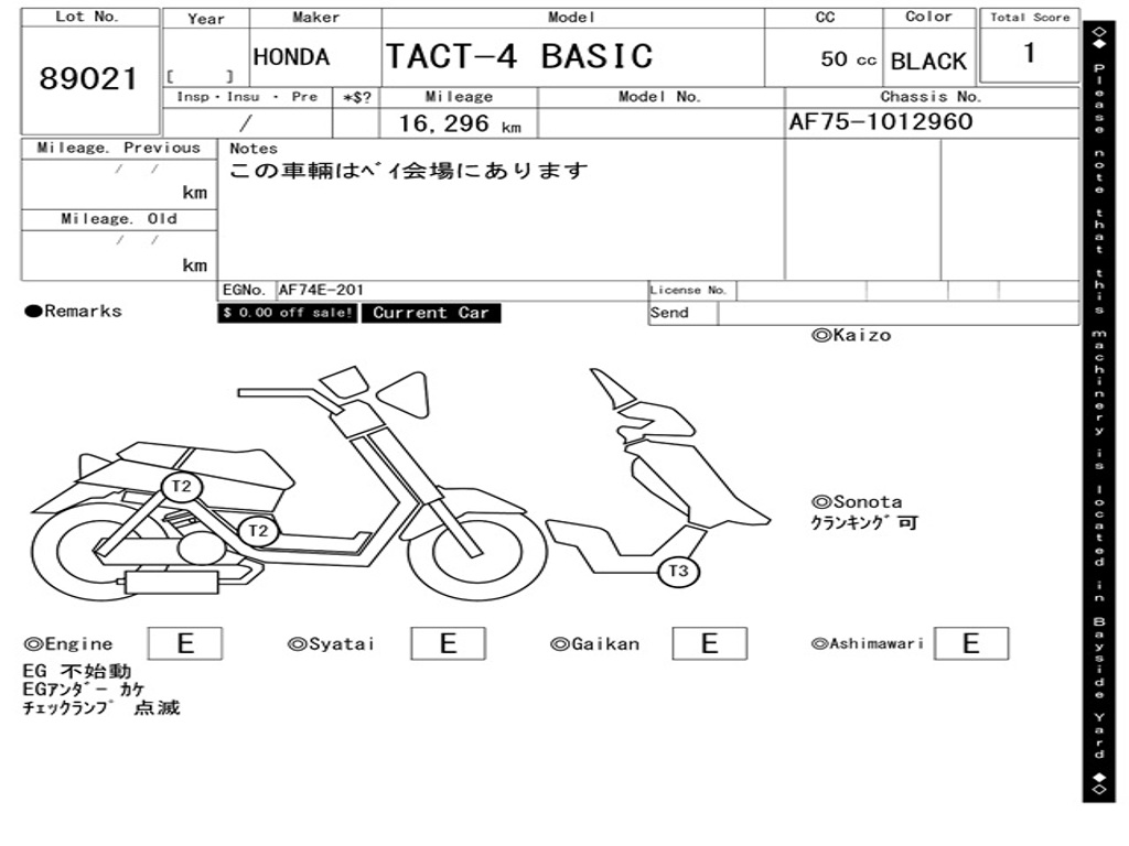 Номер рамы / VIN | AF75-1012960 |