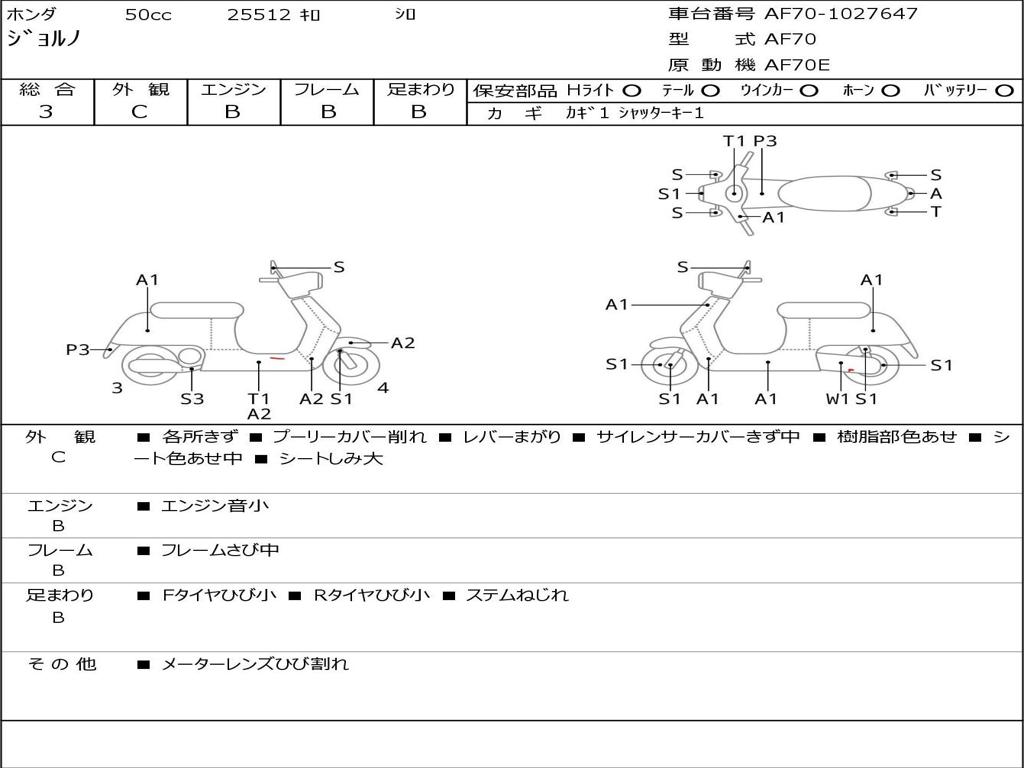 | Номер рамы / VIN | AF70-1027647 |