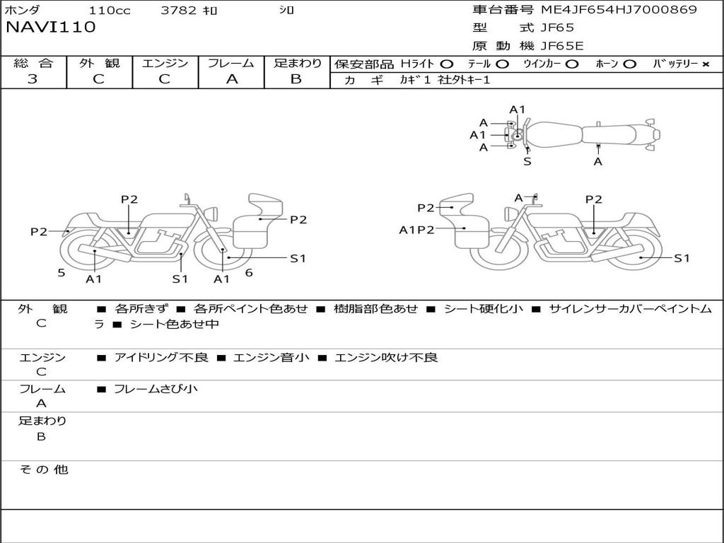 | Номер рамы / VIN | ME4JF654HJ7000869 |