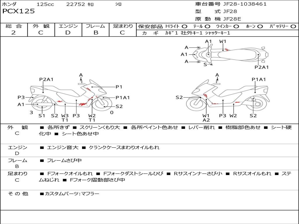 | Номер рамы / VIN | JF28-1038461 |