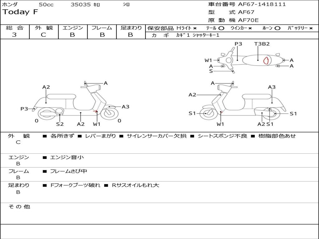 | Номер рамы / VIN | AF67-1418111 |