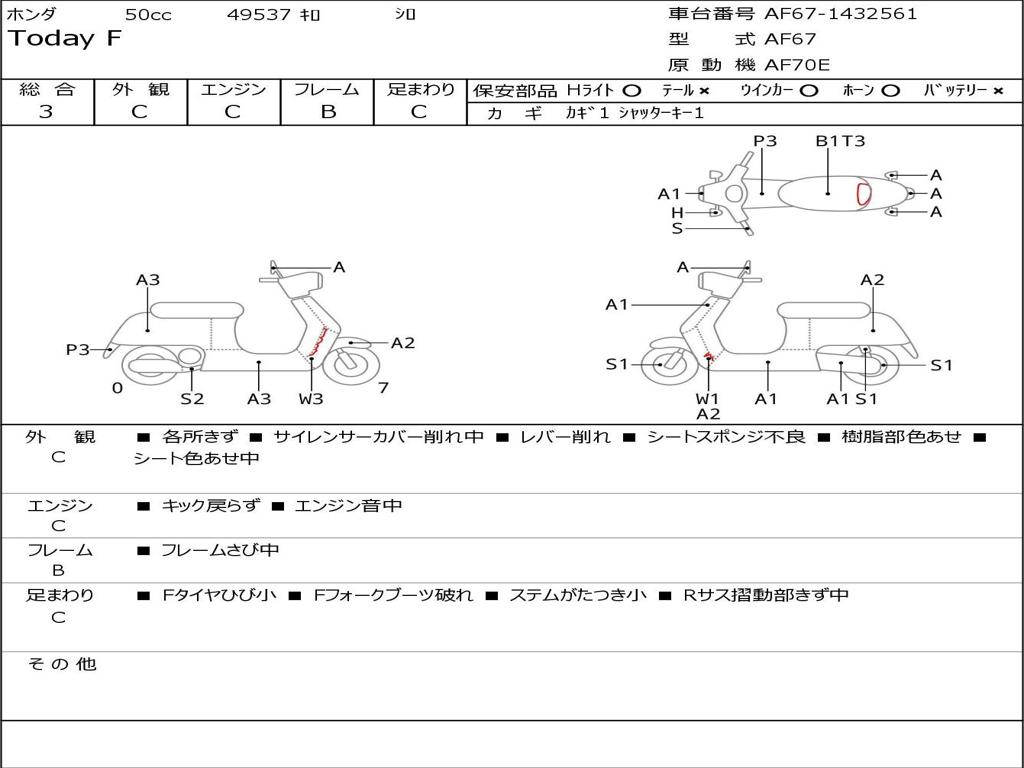 | Номер рамы / VIN | AF67-1432561 |