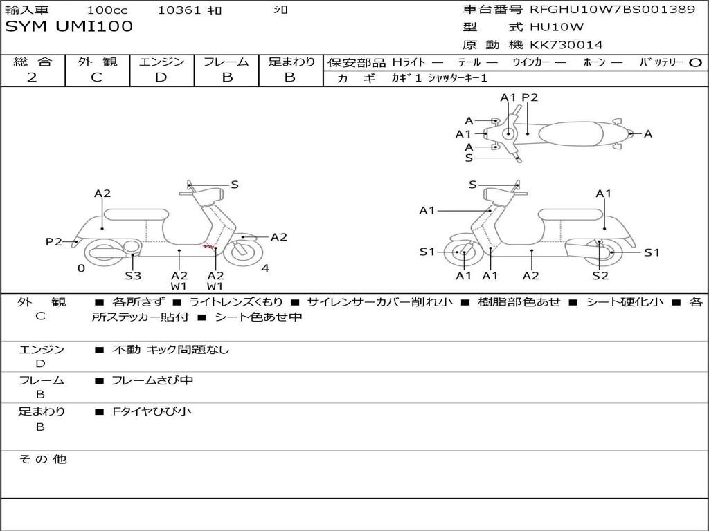 | Номер рамы / VIN | RFGHU10W7BS001389 |