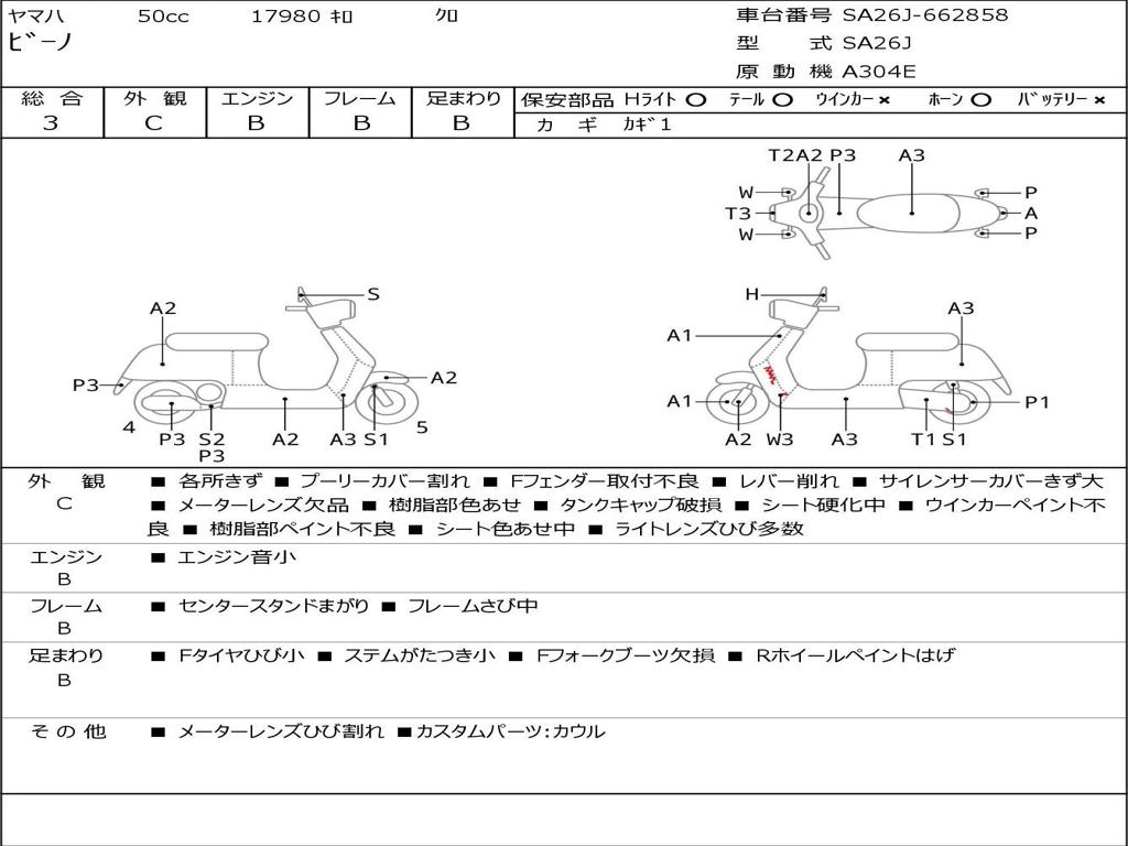 | Номер рамы / VIN | SA26J-662858 |