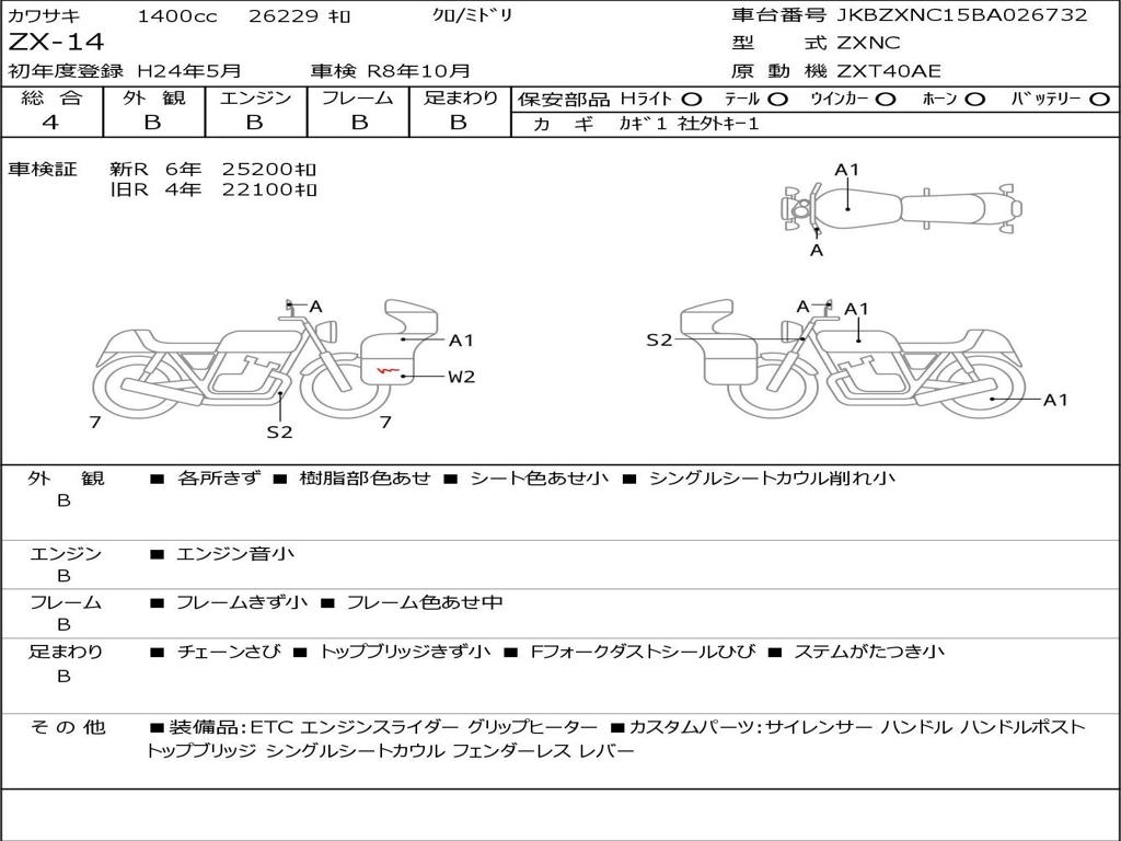 | Номер рамы / VIN | JKBZXNC15BA026732 |