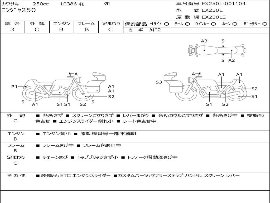 | Номер рамы / VIN | EX250L-001104 |