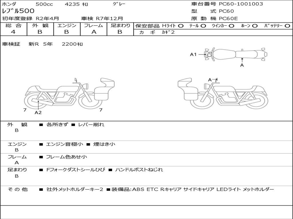 | Номер рамы / VIN | PC60-1001003 |