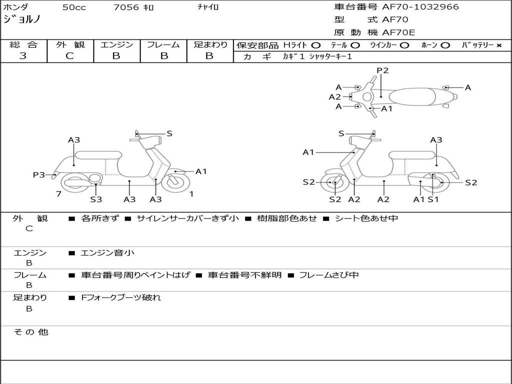 | Номер рамы / VIN | AF70-1032966 |