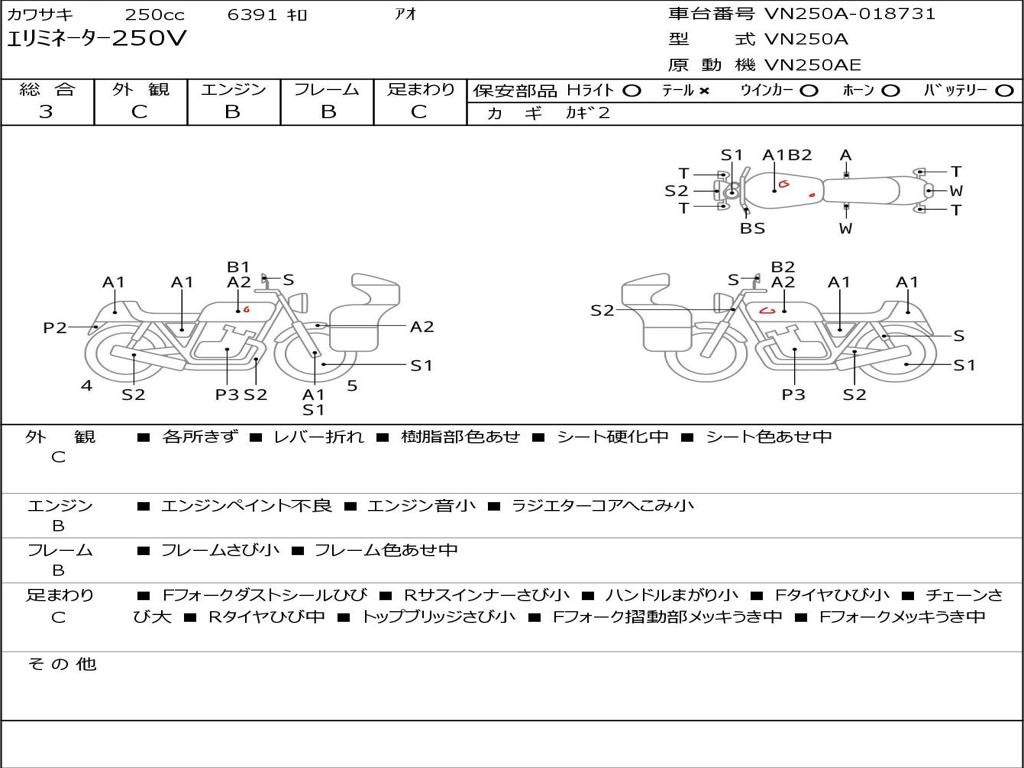 | Номер рамы / VIN | VN250A-018731 |