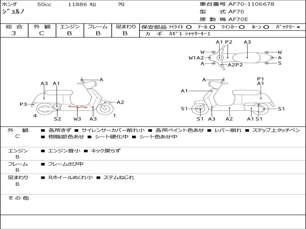 | Номер рамы / VIN | AF70-1106678 |
