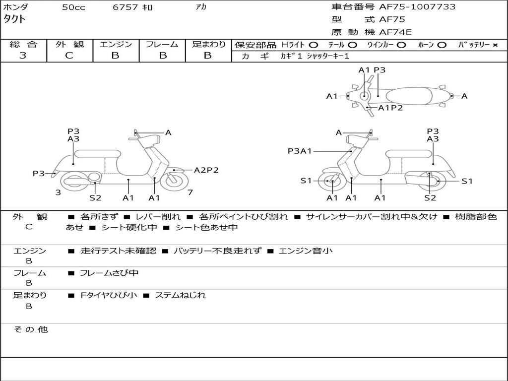 | Номер рамы / VIN | AF75-1007733 |