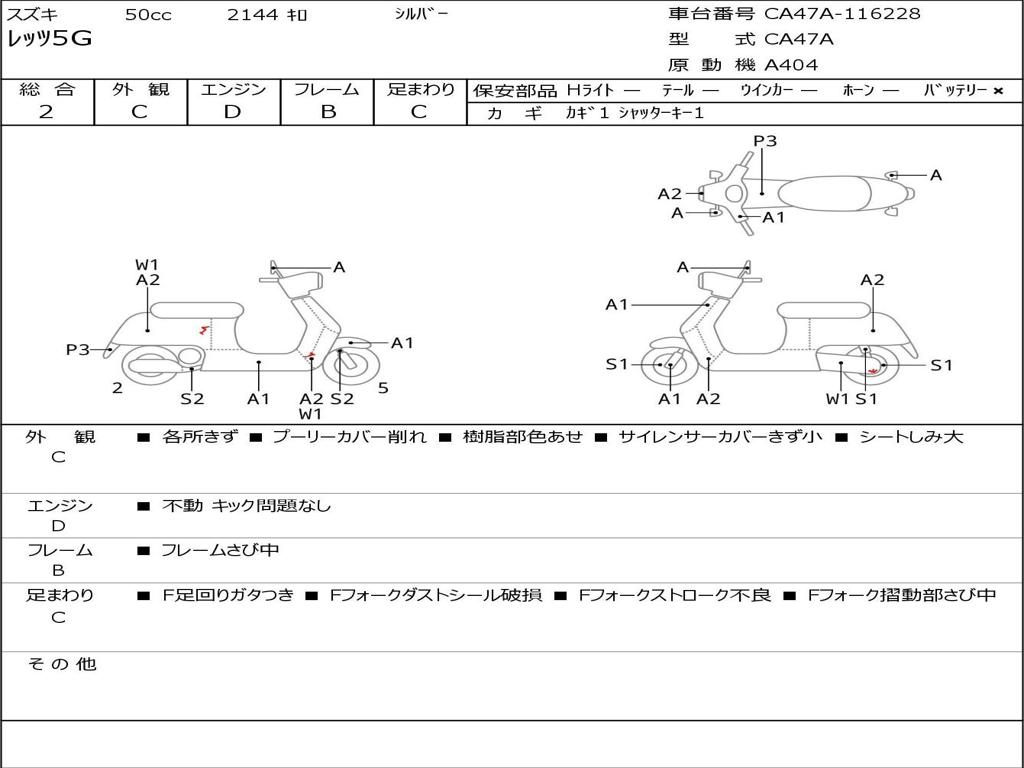 | Номер рамы / VIN | CA47A-116228 |