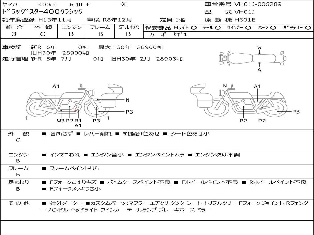 | Номер рамы / VIN | VH01J-006289 |