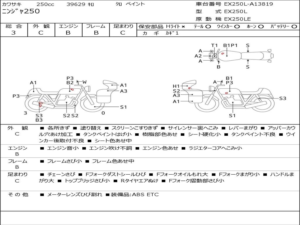 | Номер рамы / VIN | EX250L-A13819 |
