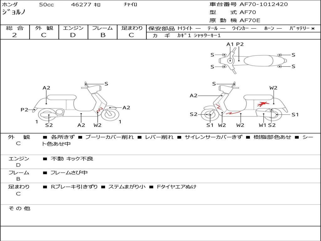 | Номер рамы / VIN | AF70-1012420 |