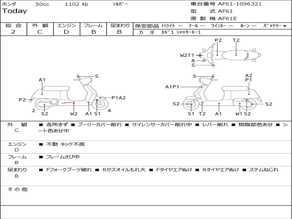 | Номер рамы / VIN | AF61-1096321 |