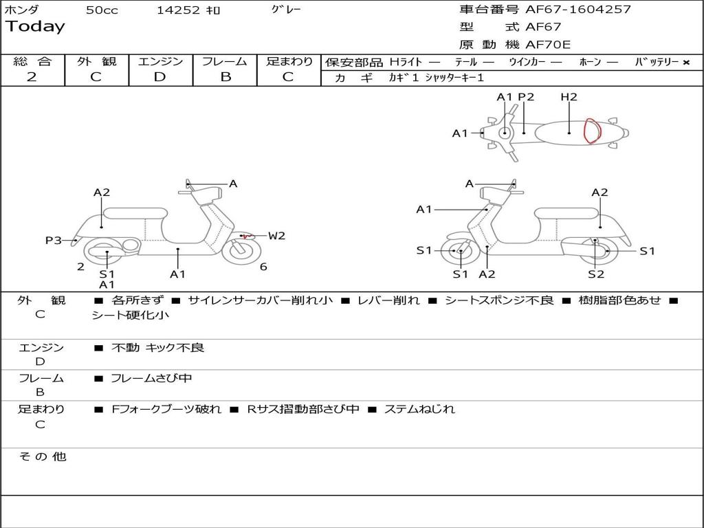 | Номер рамы / VIN | AF67-1604257 |