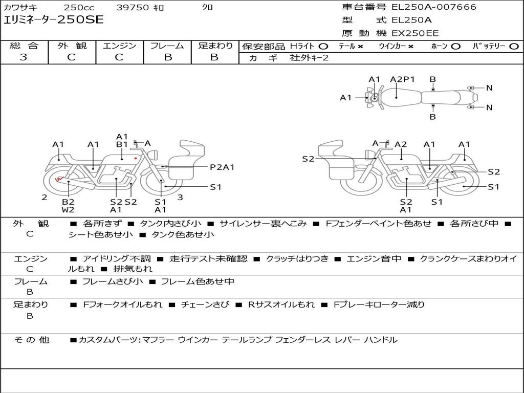 | Номер рамы / VIN | EL250A-007666 |