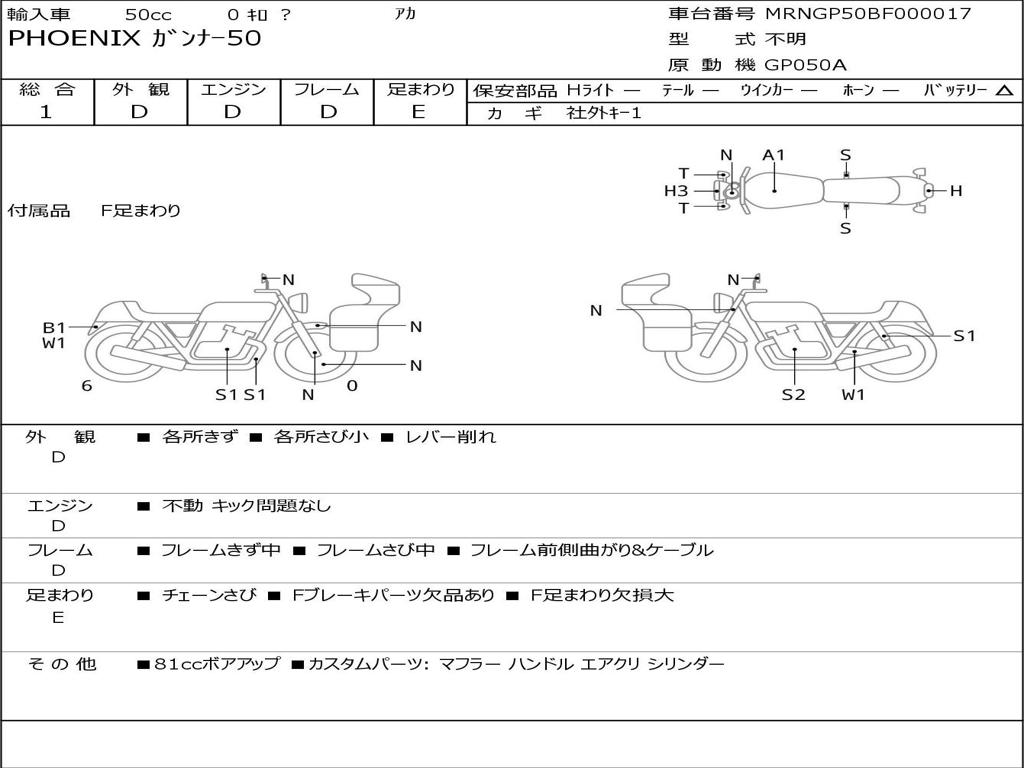 | Номер рамы / VIN | MRNGP50BF000017 |