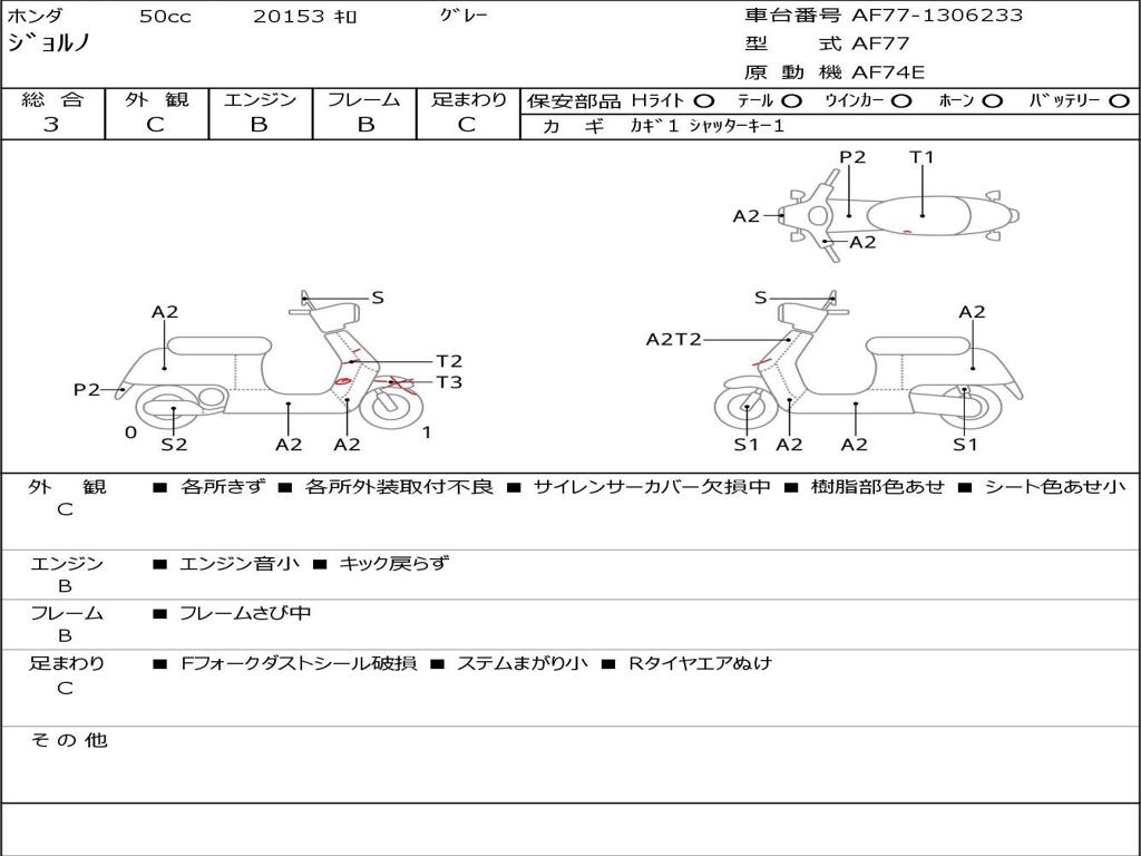 | Номер рамы / VIN | AF77-1306233 |