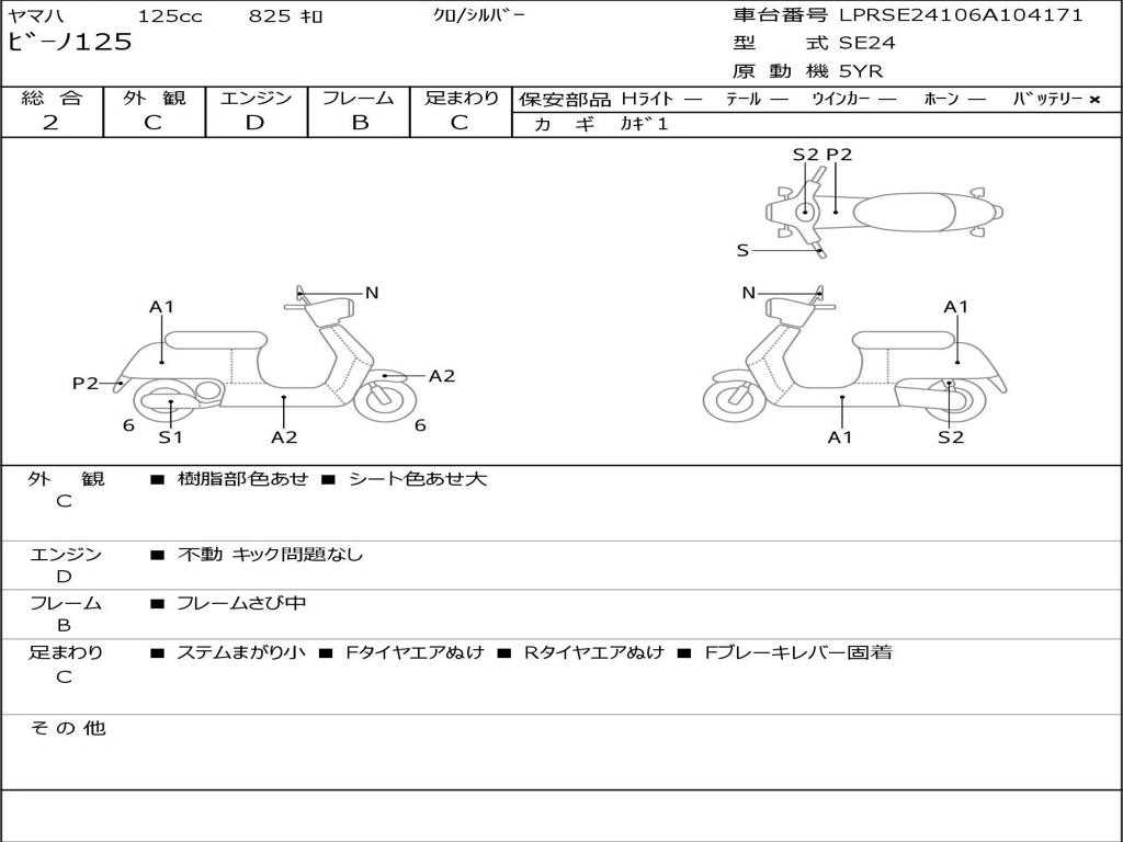 | Номер рамы / VIN | LPRSE24106A104171 |