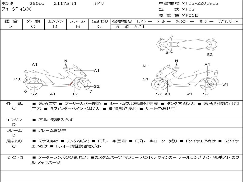 | Номер рамы / VIN | MF02-2205932 |