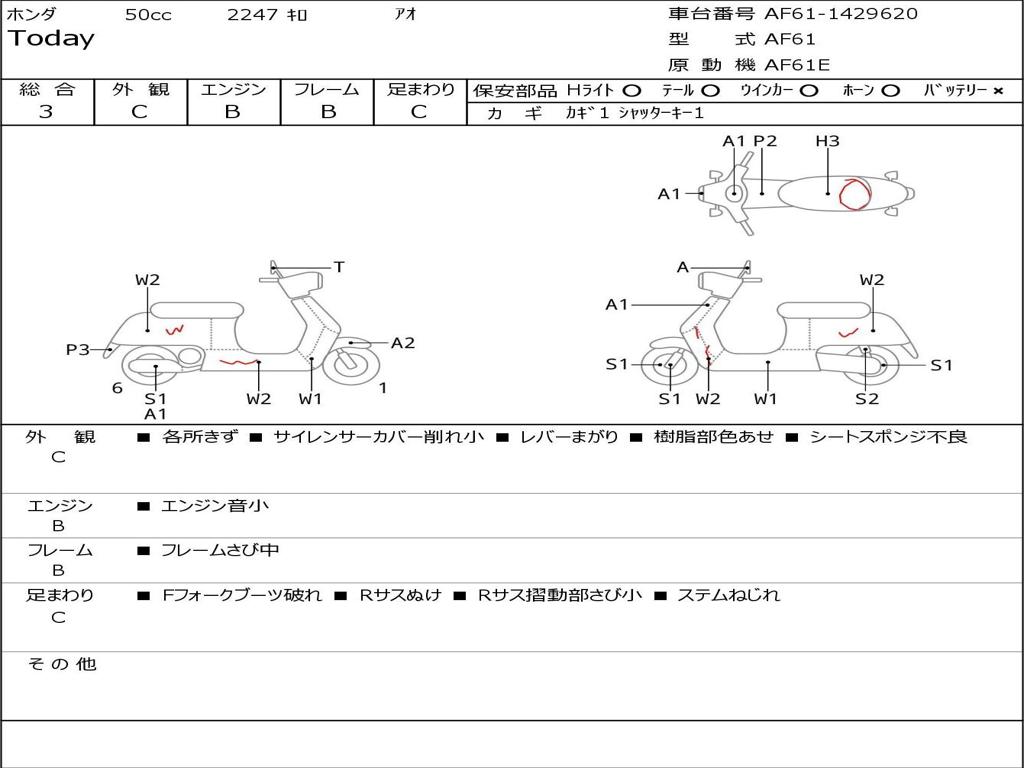 | Номер рамы / VIN | AF61-1429620 |