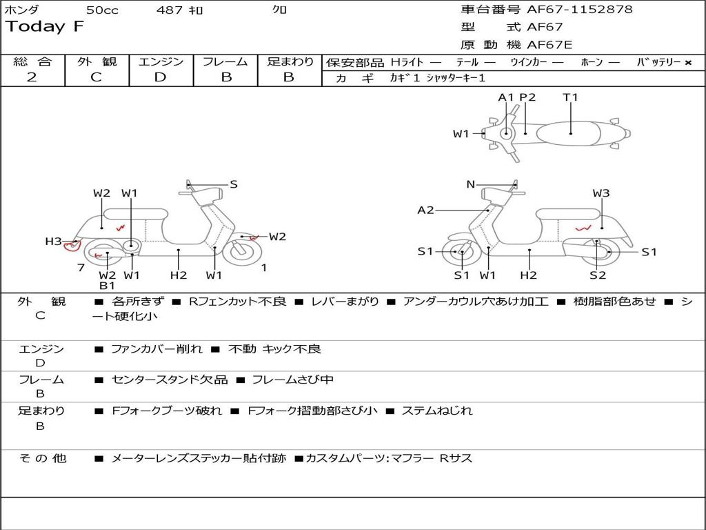 | Номер рамы / VIN | AF67-1152878 |
