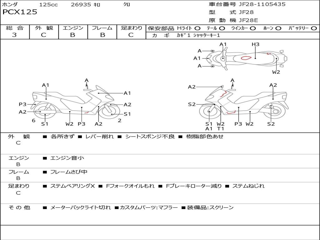 | Номер рамы / VIN | JF28-1105435 |