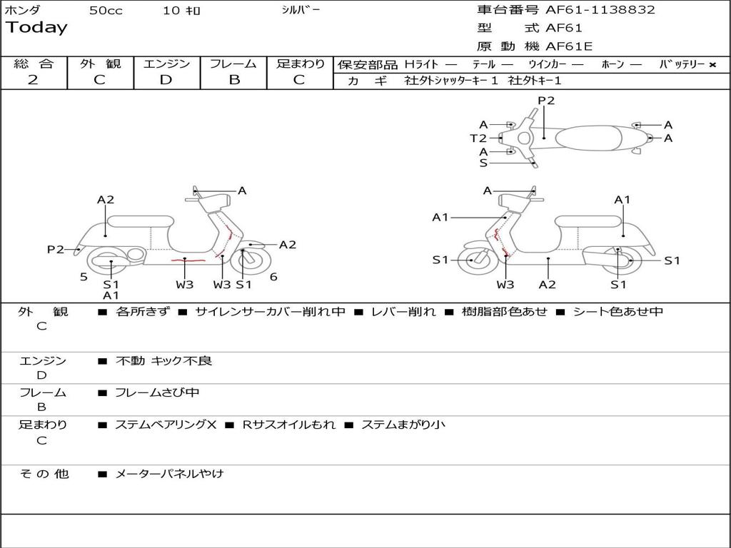 | Номер рамы / VIN | AF61-1138832 |