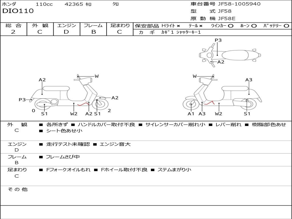 | Номер рамы / VIN | JF58-1005940 |