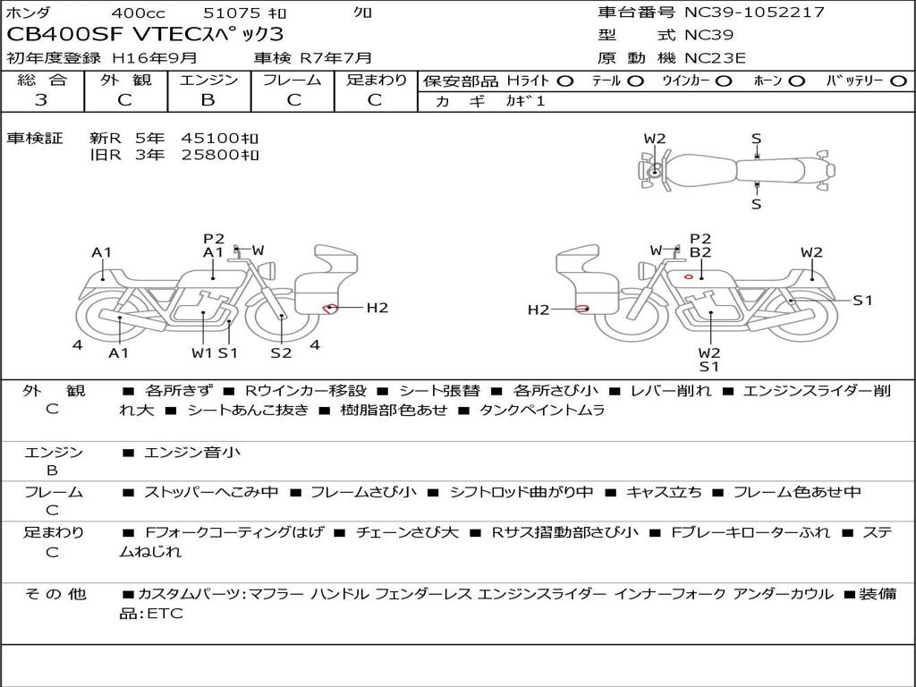 | Номер рамы / VIN | NC39-1052217 |