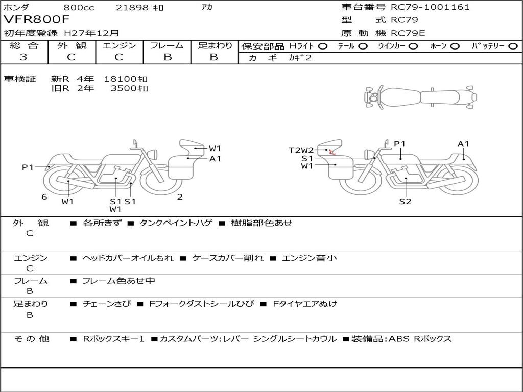 | Номер рамы / VIN | RC79-1001161 |