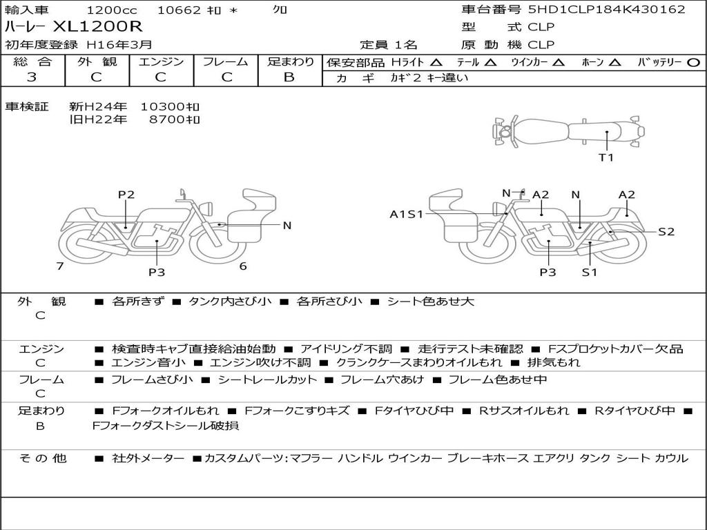 | Номер рамы / VIN | 5HD1CLP184K430162 |