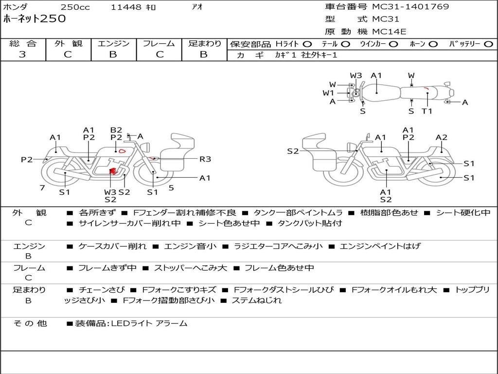 | Номер рамы / VIN | MC31-1401769 |