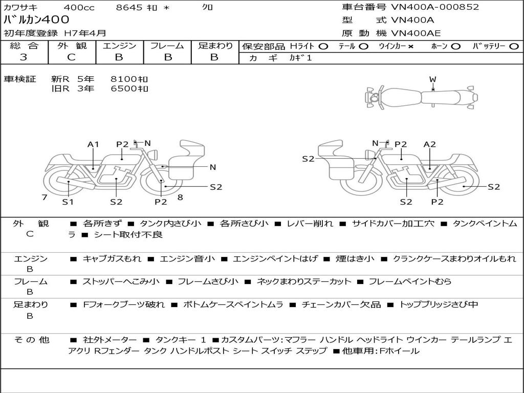 | Номер рамы / VIN | VN400A-000852 |
