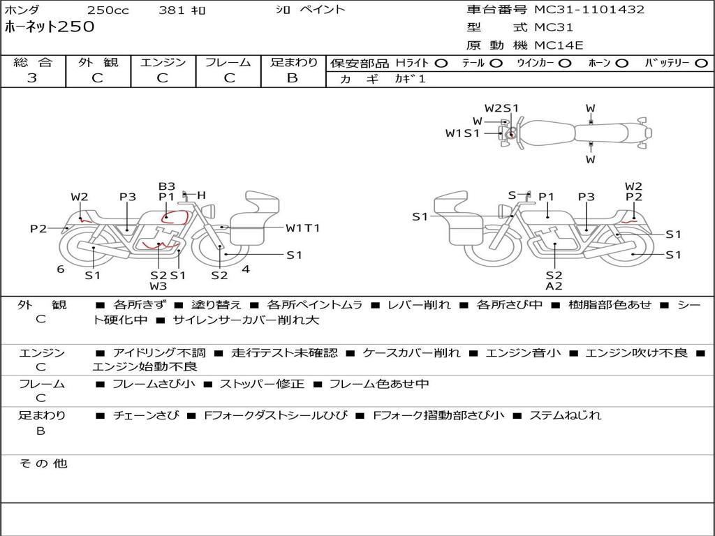 | Номер рамы / VIN | MC31-1101432 |