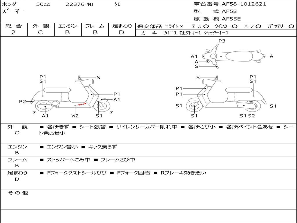 | Номер рамы / VIN | AF58-1012621 |