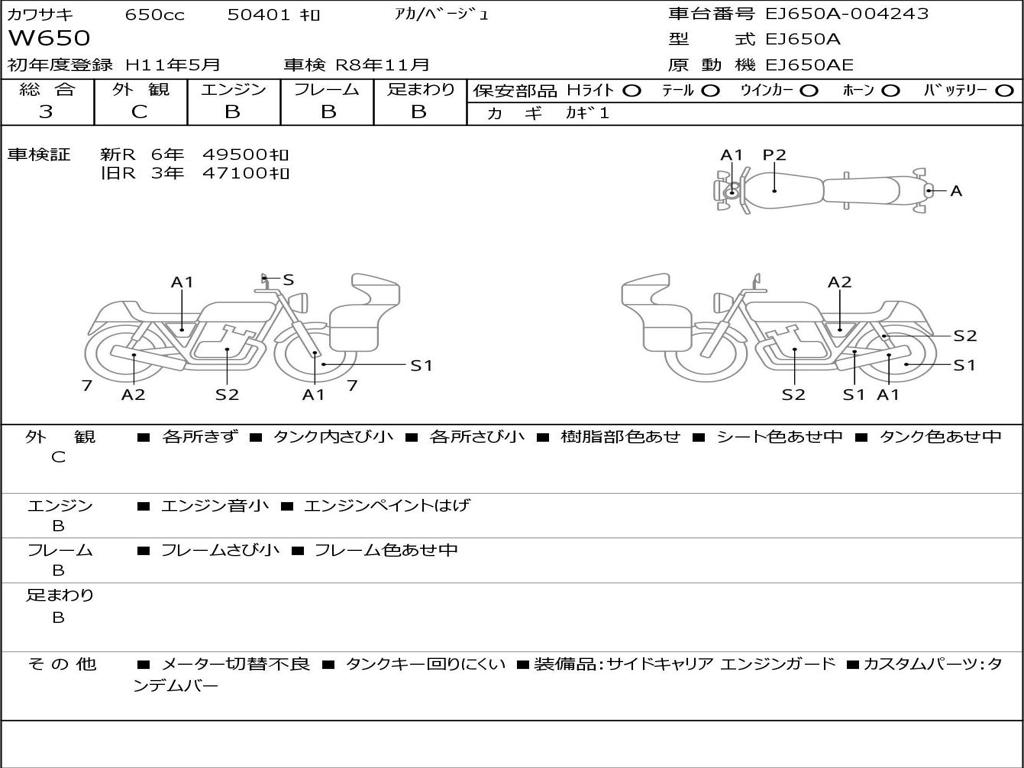 | Номер рамы / VIN | EJ650A-004243 |