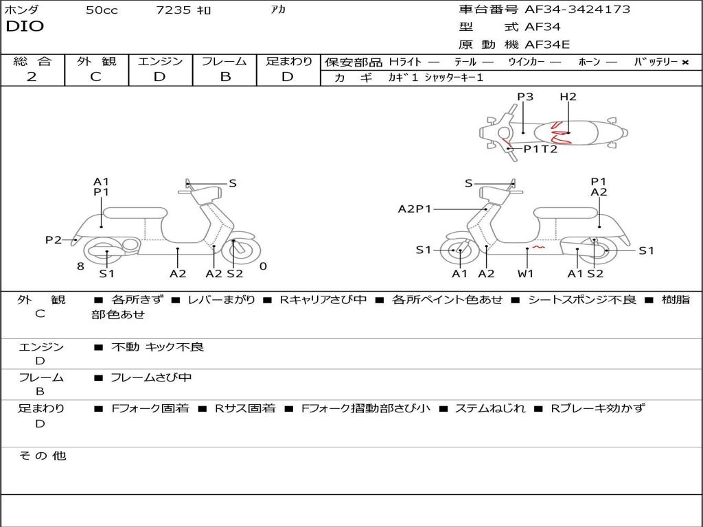 | Номер рамы / VIN | AF34-3424173 |