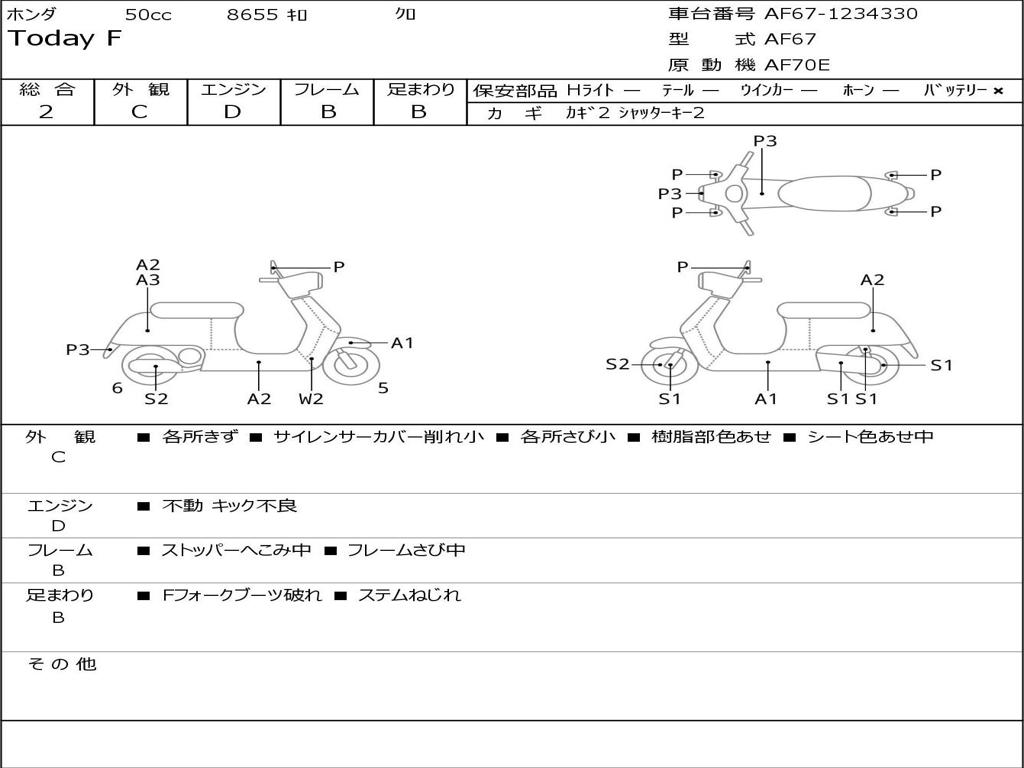 | Номер рамы / VIN | AF67-1234330 |