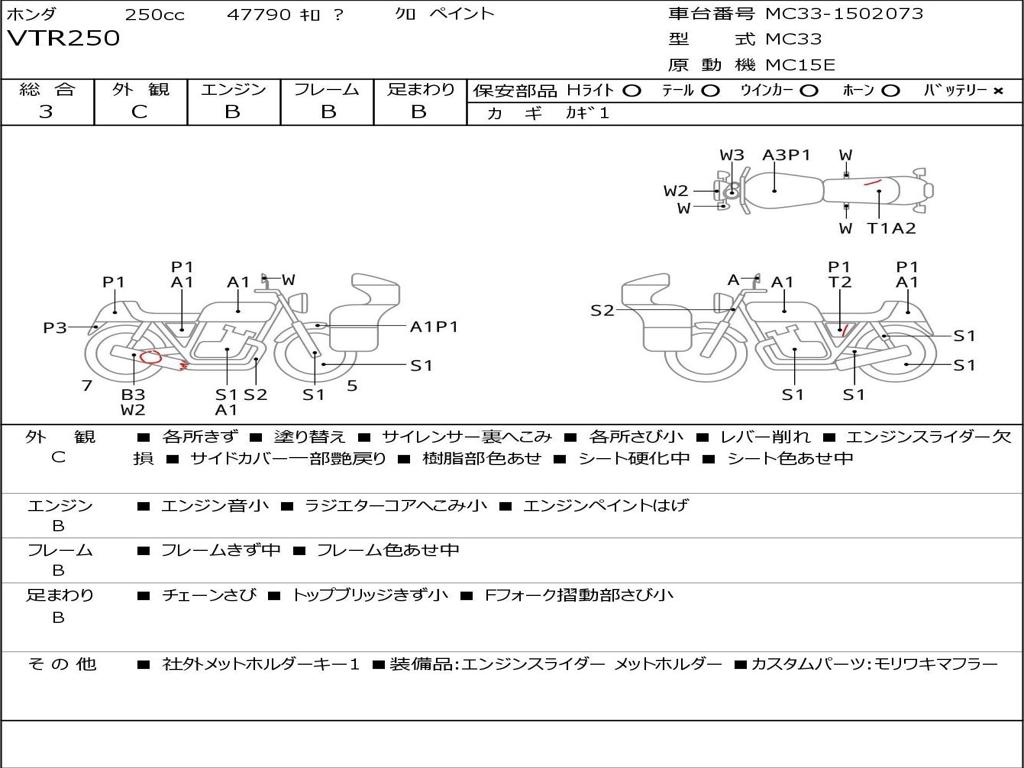 | Номер рамы / VIN | MC33-1502073 |