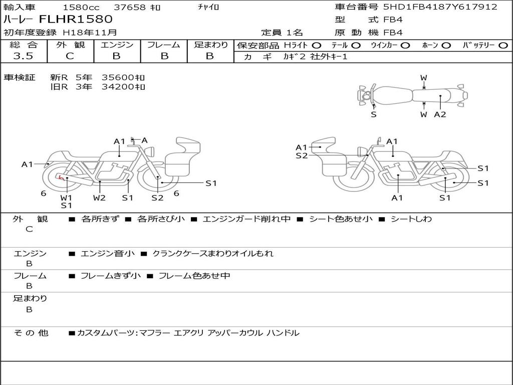 | Номер рамы / VIN | 5HD1FB4187Y617912 |