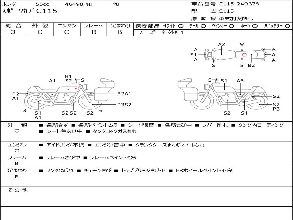 | Номер рамы / VIN | C115-249378 |