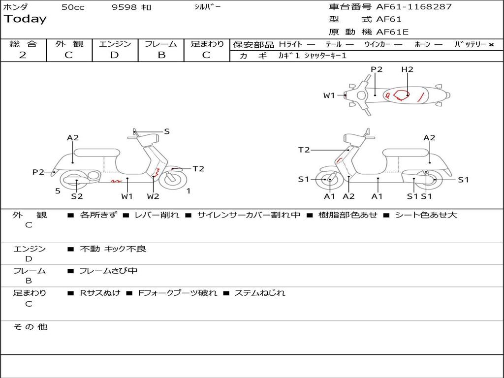 | Номер рамы / VIN | AF61-1168287 |