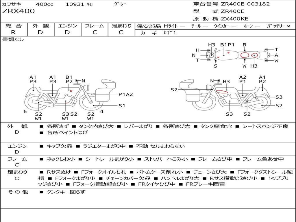 | Номер рамы / VIN | ZR400E-003182 |