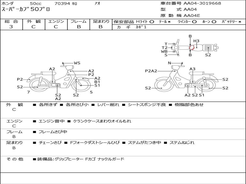 | Номер рамы / VIN | AA04-3019668 |